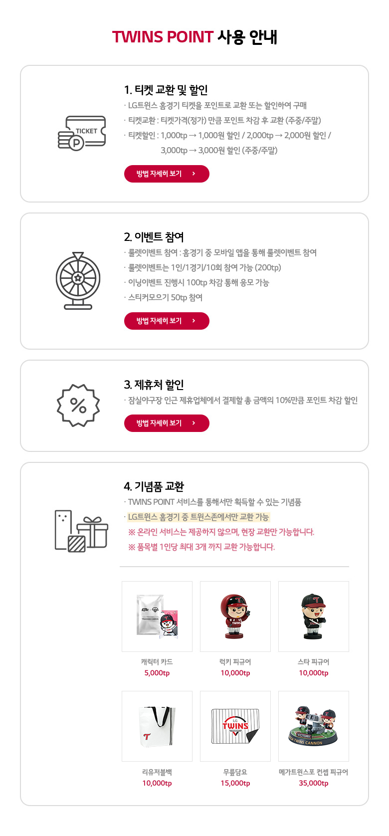 트윈스 포인트로 가능한것은 해당 포인트로 경기티켓 할인이 가능합니다.